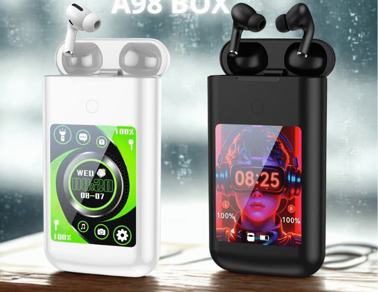 Mantente conectado y cargado con la A98 BOX, un dispositivo innovador y multifuncional que combina la funcionalidad de unos auriculares inteligentes, un altavoz Bluetooth y una pantalla multimedia de 2,8 pulgadas. Con la A98 BOX, nunca más tendrás que preocuparte por quedarte sin batería, ya estés de viaje o disfrutando de tu música favorita. Este elegante y compacto dispositivo es perfecto para personas de todas las edades, y es fácil de usar y llevar contigo.